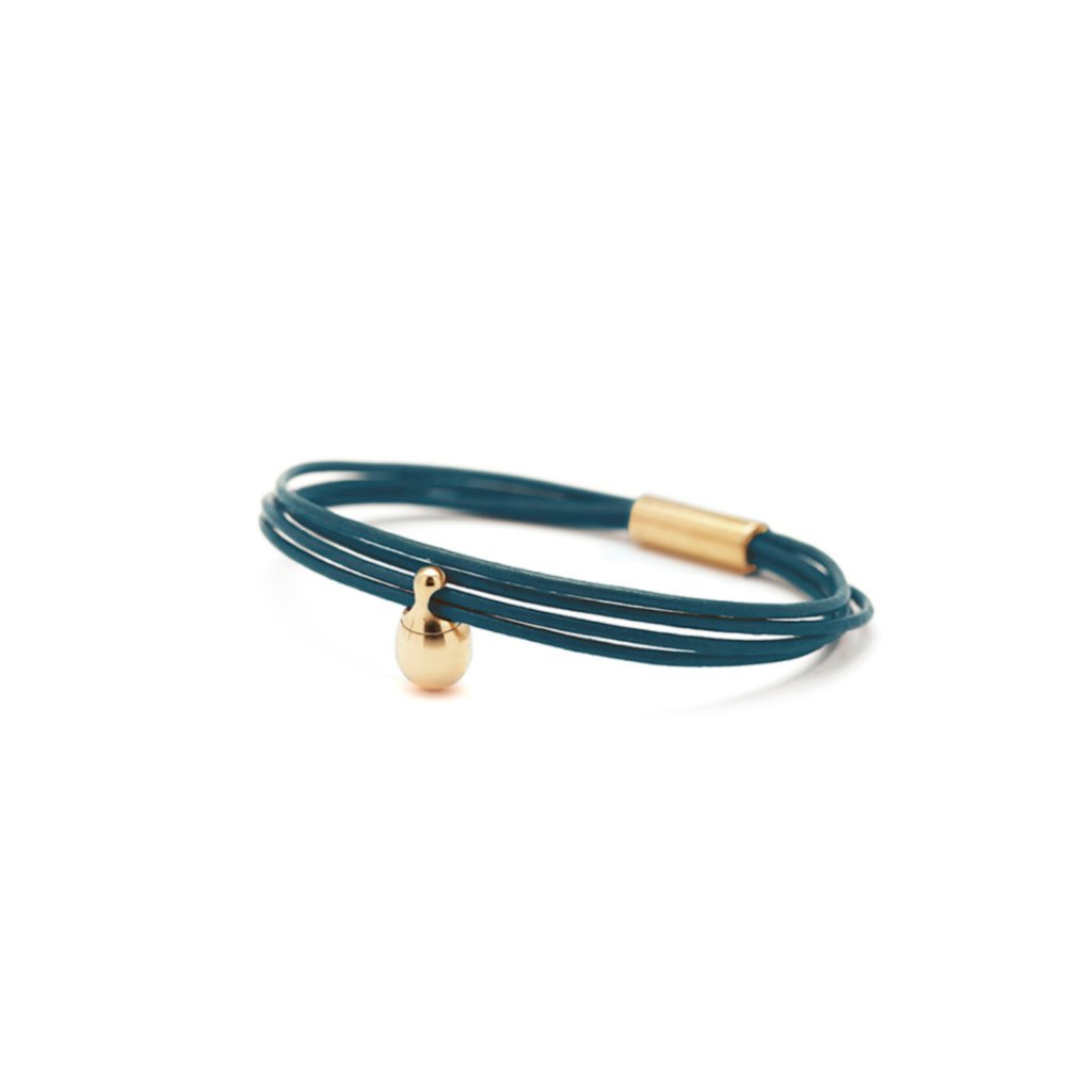Jemná kůže (tmavý tyrkysový) náramek s popelem (zlatý)