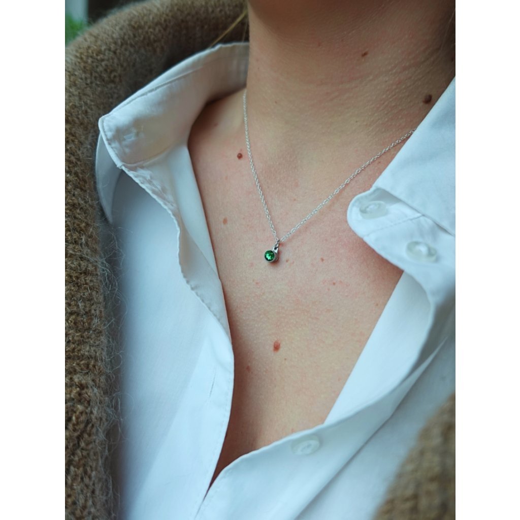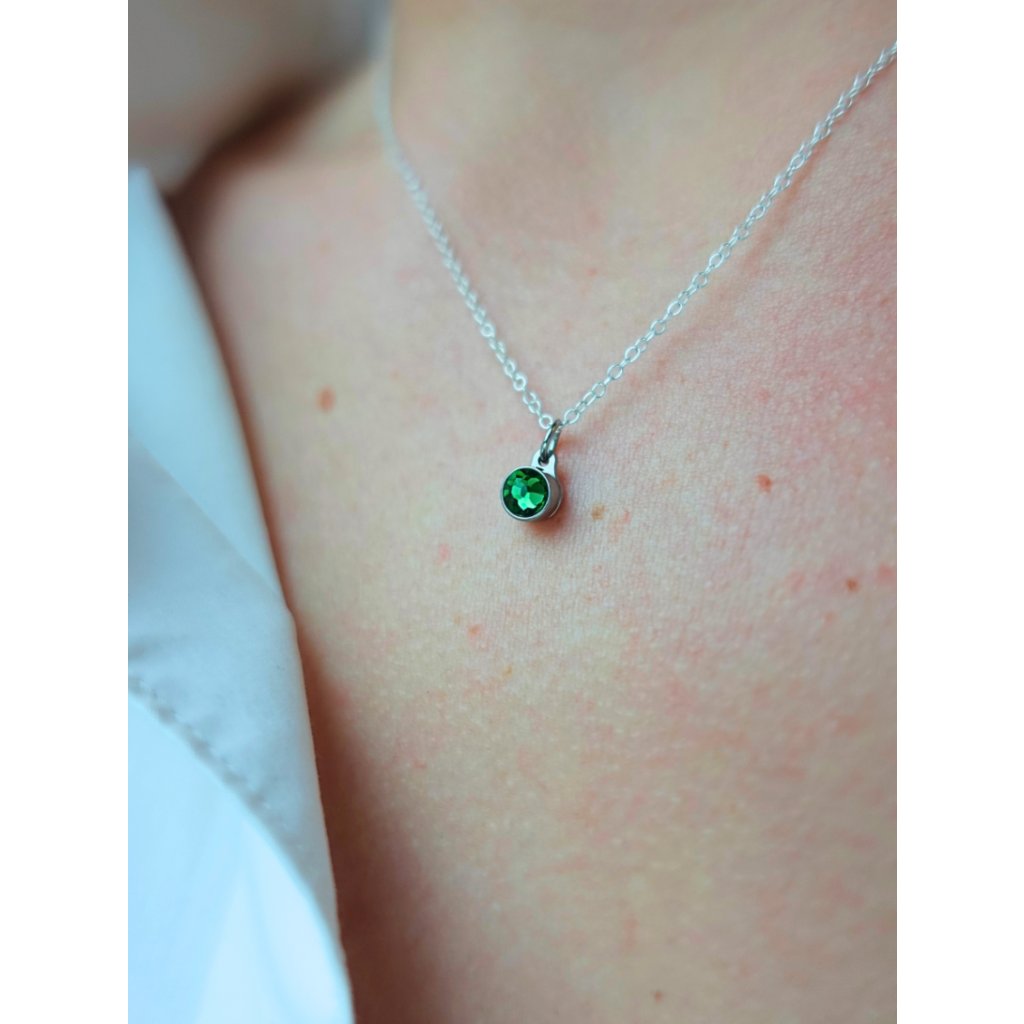 Elegantní přívěsek s peridotským krystalem, symbol měsíce srpna. Vyrobeno z hypoalergenní chirurgické oceli 316 a doplněno diskrétním nádrží pro popel nebo pramenem milovaného zesnulého. Tento jedinečný klenot kombinuje krásu, silnou symboliku a osobní paměť.