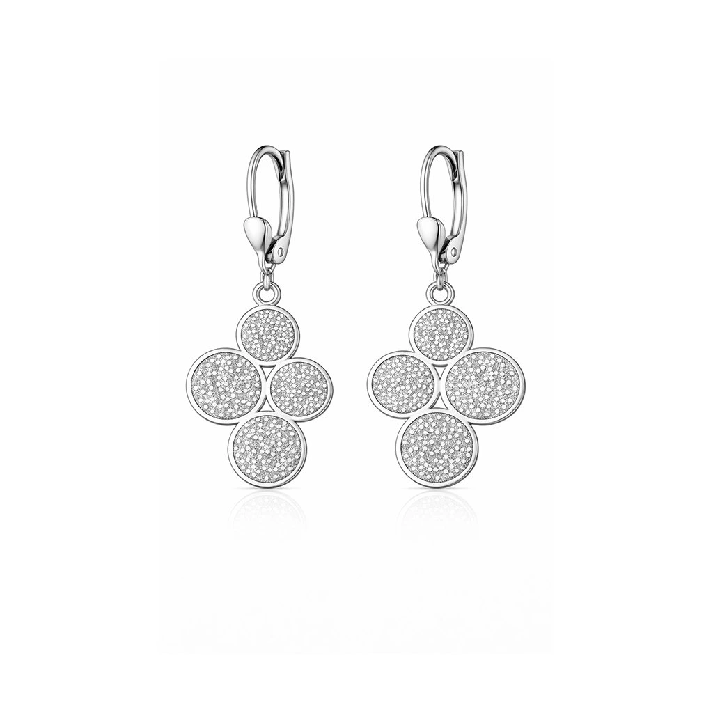 Elegantní stříbrné náušnice tvořené čtyřmi propojenými kruhy vytvářejí harmonický a moderní design s jemným třpytivým efektem. Strukturovaný povrch jednotlivých ploch krásně odráží světlo a dodává šperku luxusní, ale zároveň decentní vzhled.