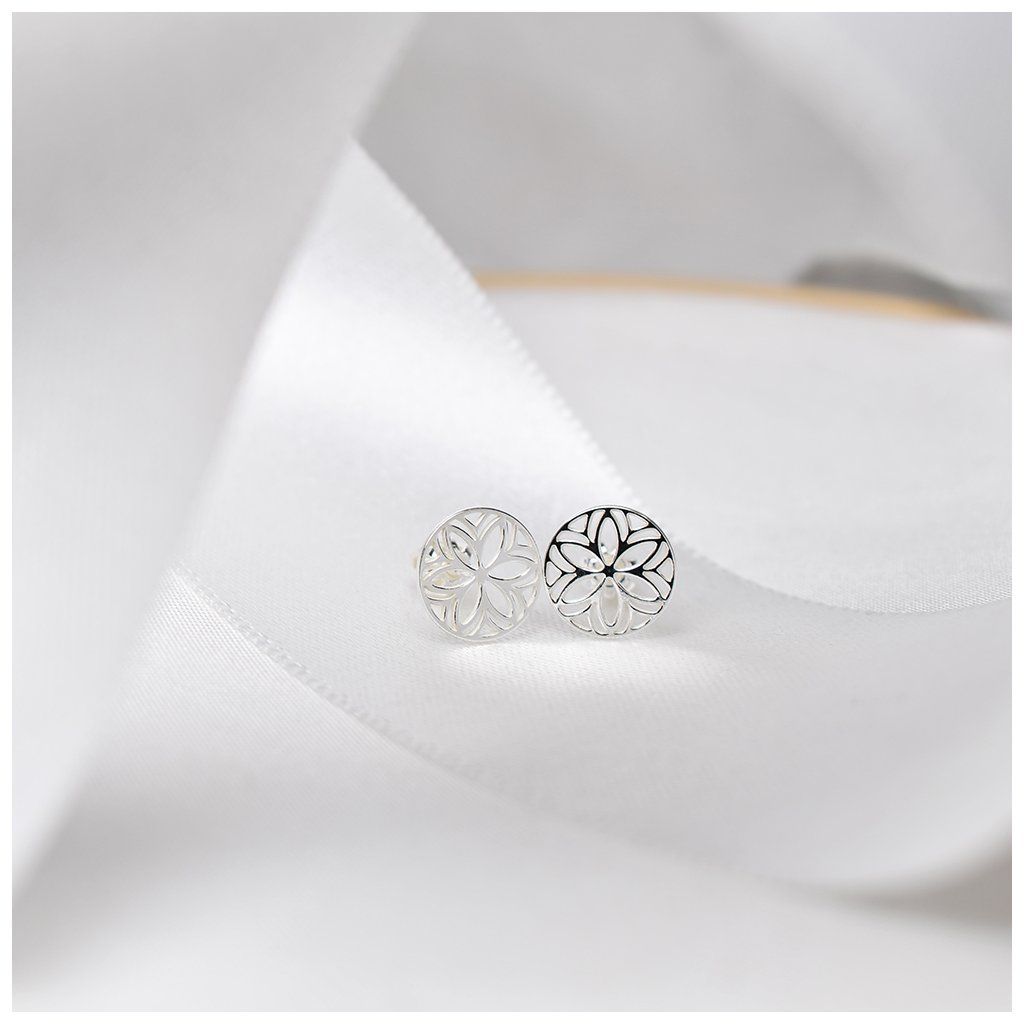 🌼 Stříbrné náušnice s květinovou mandalou – symbol harmonie a rovnováhy