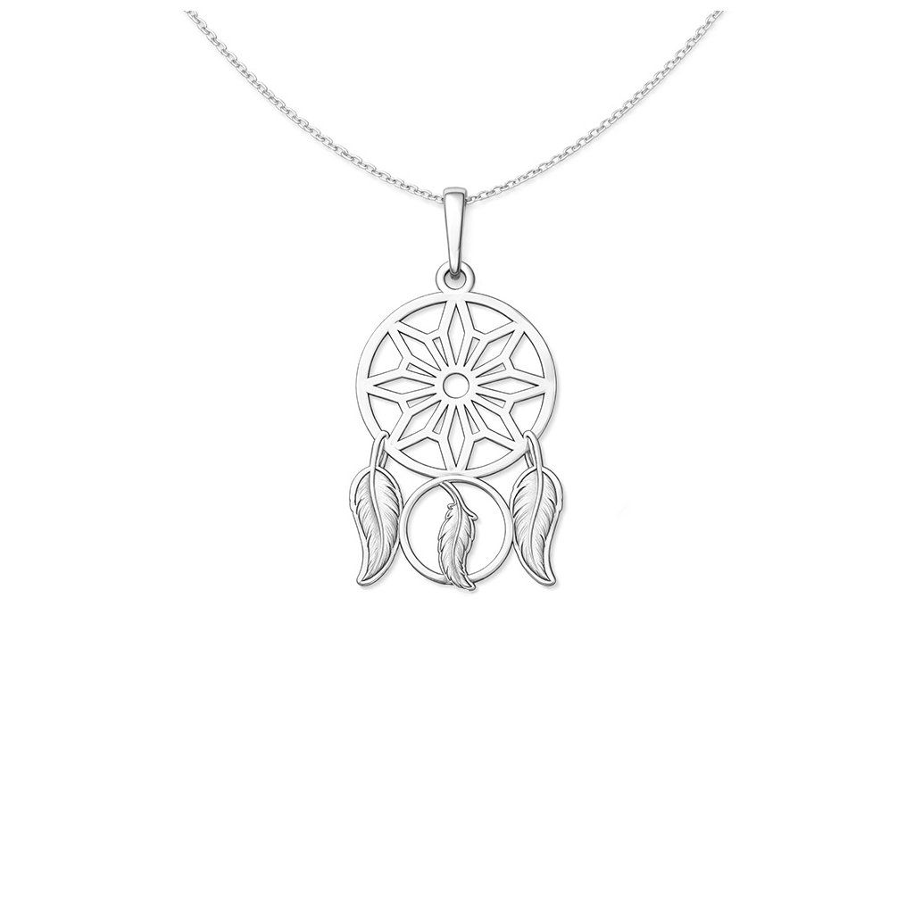 Jemný přívěsek inspirovaný motivem lapače snů zaujme propracovaným vzorem a lehkým, vzdušným vzhledem. Dominantní kruh s ornamentem doplňují zavěšená pírka, která dodávají šperku pohyb a symboliku lehkosti.