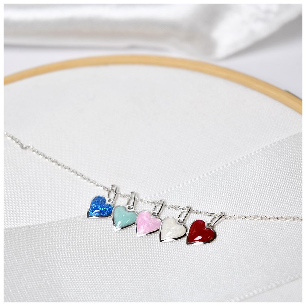 Minimalistický stříbrný přívěsek ve tvaru srdce zaujme svou jednoduchostí a zároveň výraznou barevnou výplní. Jemný rám ze stříbra obklopuje třpytivý nebo hladký barevný střed, který dodává šperku hravost a osobitý charakter.