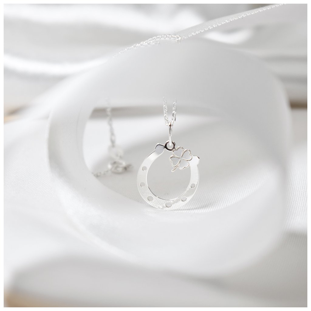 Podkova s čtyřlístkem představuje pozitivní energii, naději a šťastné cesty životem — drobný šperk s velkým významem ✨