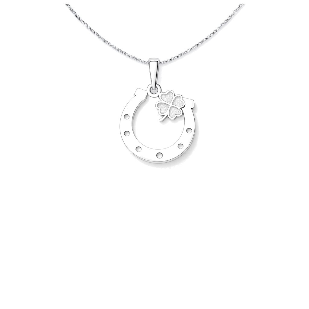 Elegantní stříbrný přívěsek spojuje dva silné talismany – podkovu jako znamení ochrany a čtyřlístek jako symbol štěstí a hojnosti. Jemné detaily vytvářejí harmonický a nadčasový design, který se krásně hodí pro každodenní nošení.