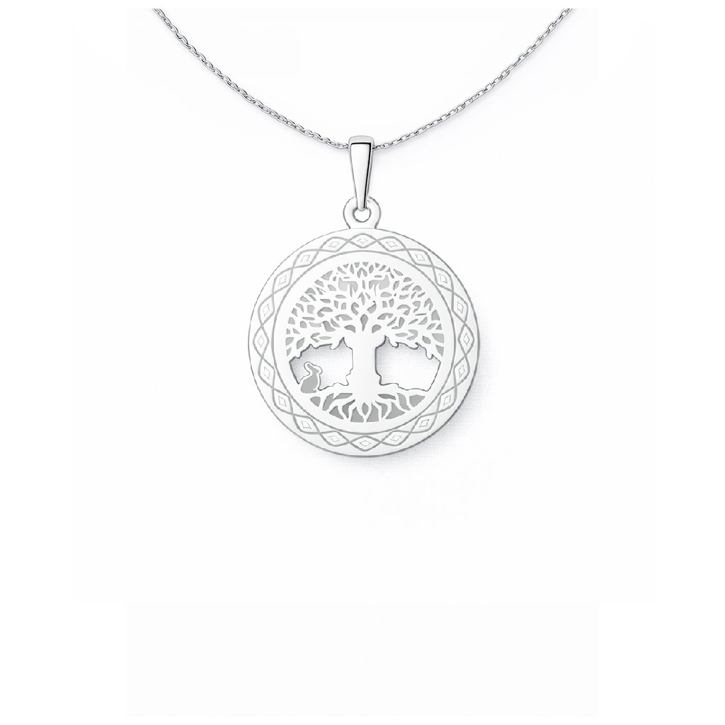 Elegantní stříbrný přívěsek s motivem stromu života zasazeným do kruhu představuje harmonii, sílu a propojení s přírodou. Dekorativní lem dodává přívěsku osobitý charakter a zvýrazňuje jeho detailní zpracování.